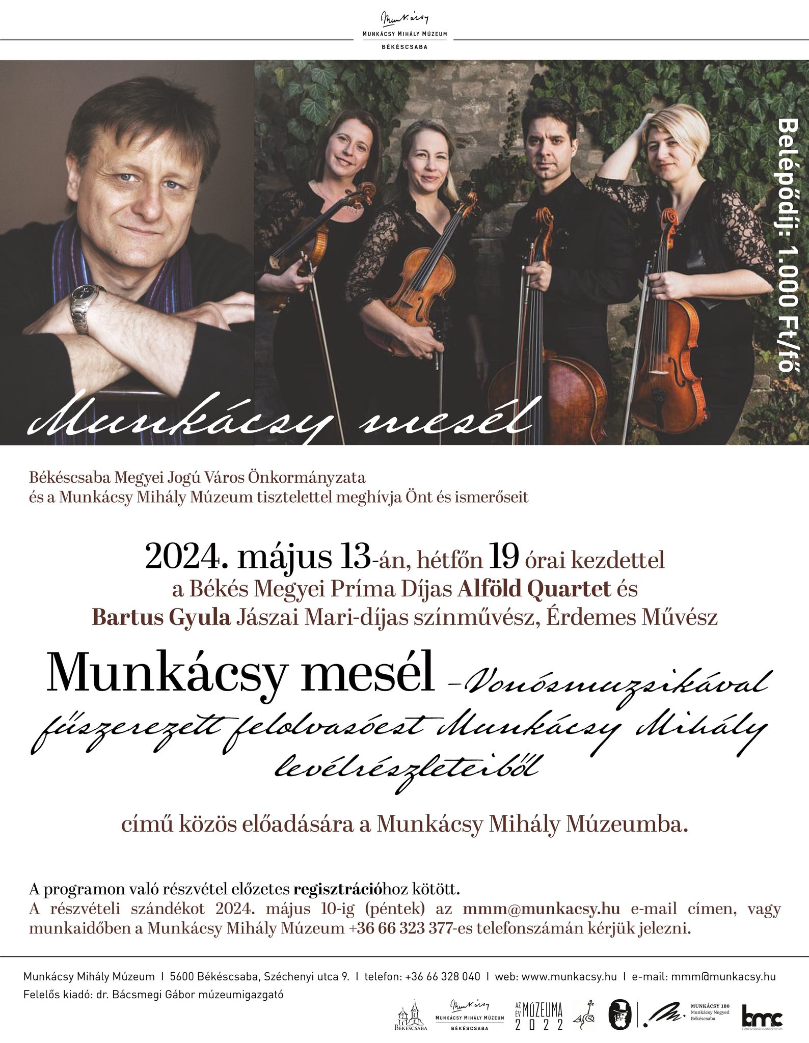 Learn moreProgramajánló – vonósmuzsikával fűszerezett felolvasóest Munkácsy Mihály levélrészleteiből a Munkácsy Mihály Múzeumban, Bartus Gyula szereplésével