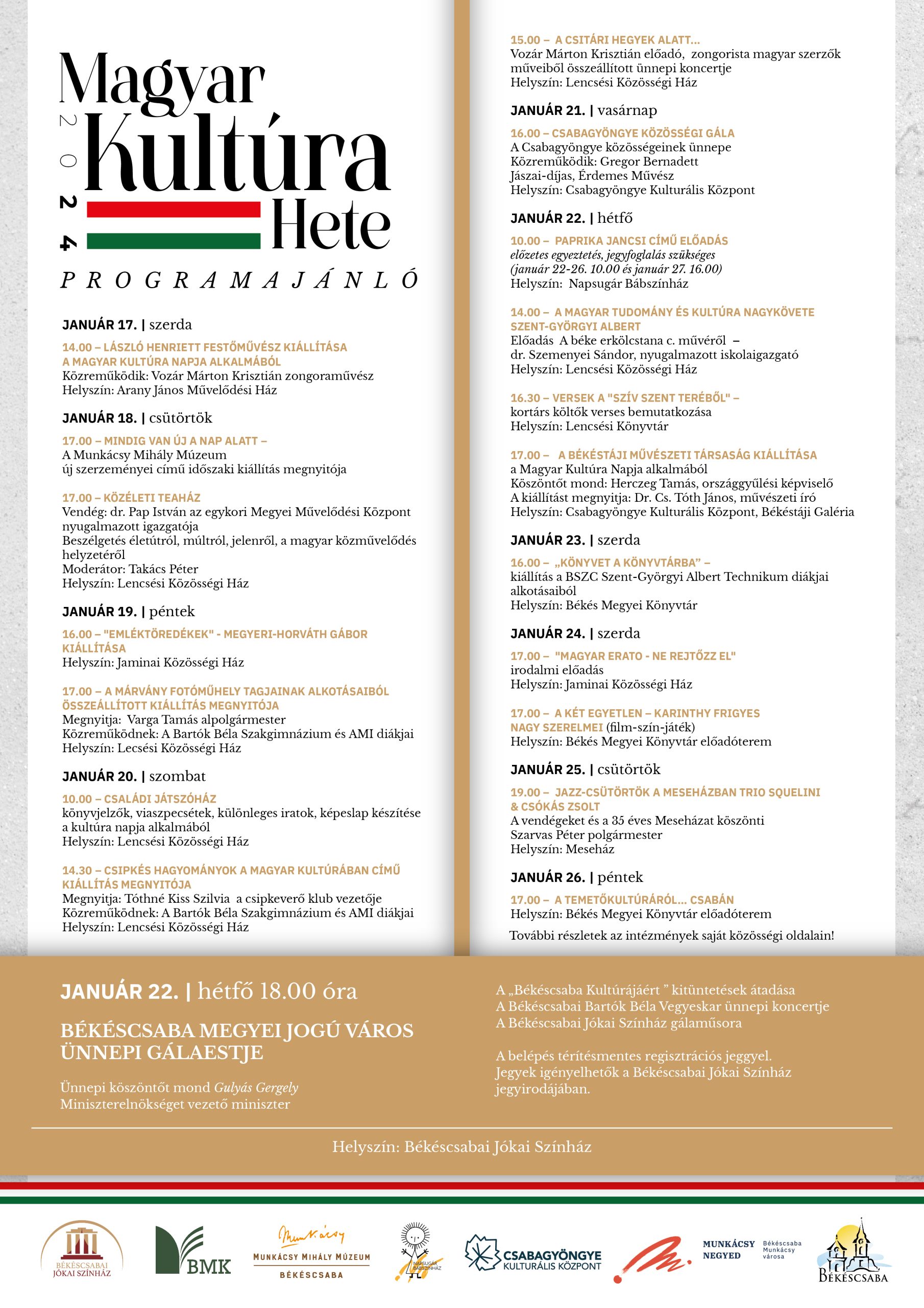 Learn moreNézőink figyelmébe ajánljuk a gazdag programsorozatot, amelynek keretében január 22-én 18.00 órakor Békéscsaba megyei jogú város ünnepi gálaestjét tekinthetik meg színházunkban.