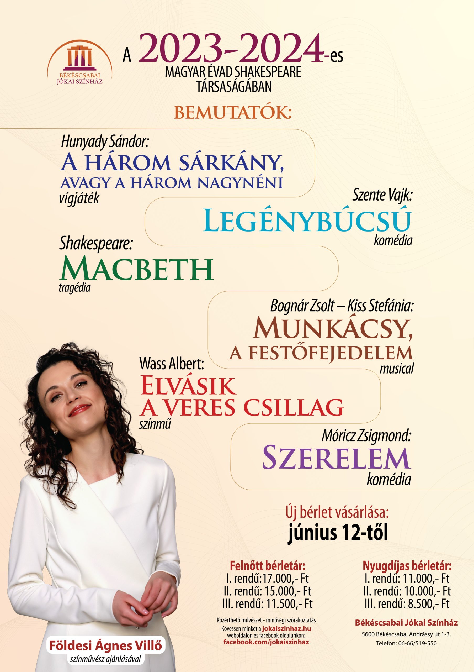 Learn moreHiggye el, mi is számoljuk a napokat! Földesi Ágnes Villő színművészt is viszontláthatják, ha bérletet vásárolnak!