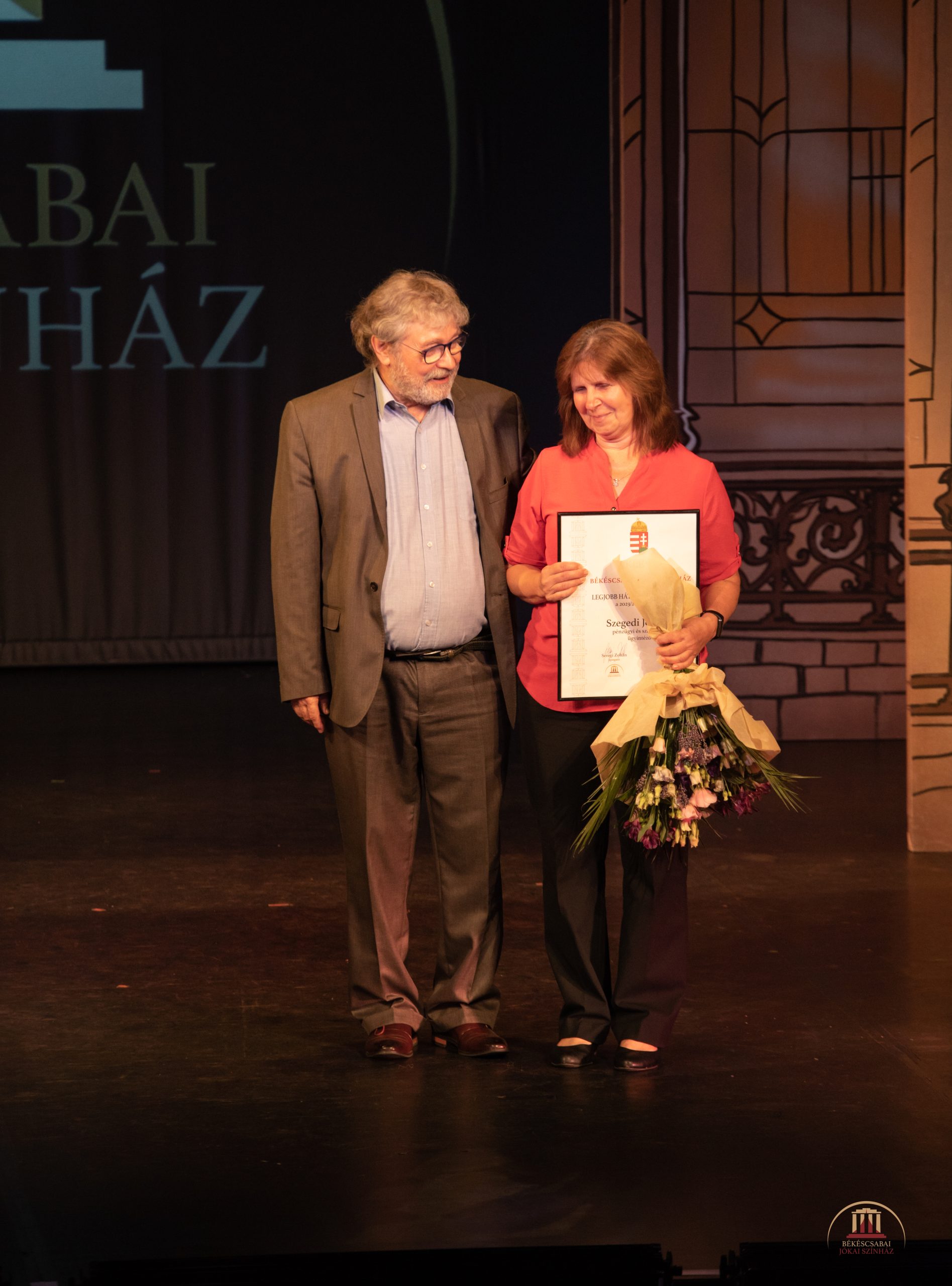 A legjobb háttérmunkáért adományozott díjat a színház munkatársainak döntése alapján a 2023/2024-es évadban Szegedi Jenőné, a gazdasági iroda munkatársa kapta.