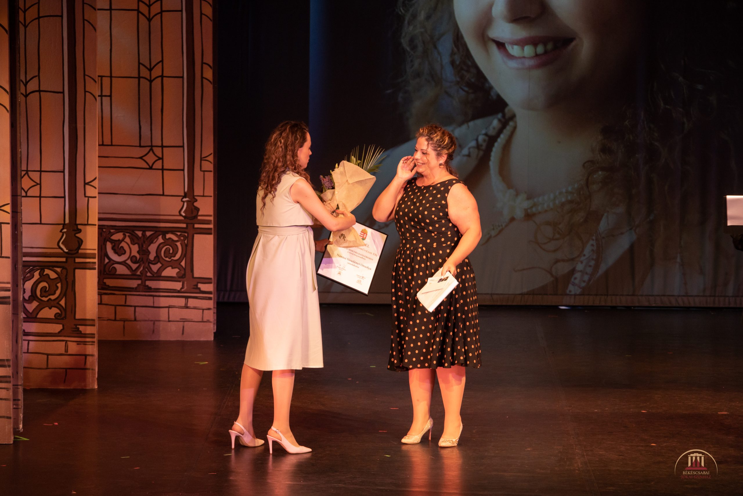 Földesi Ágnes Villő adta át a Fiatal tehetség kategória díját Nánási-Veselényi Orsolyának – őszinte meglepetés és öröm látszott az arcokon