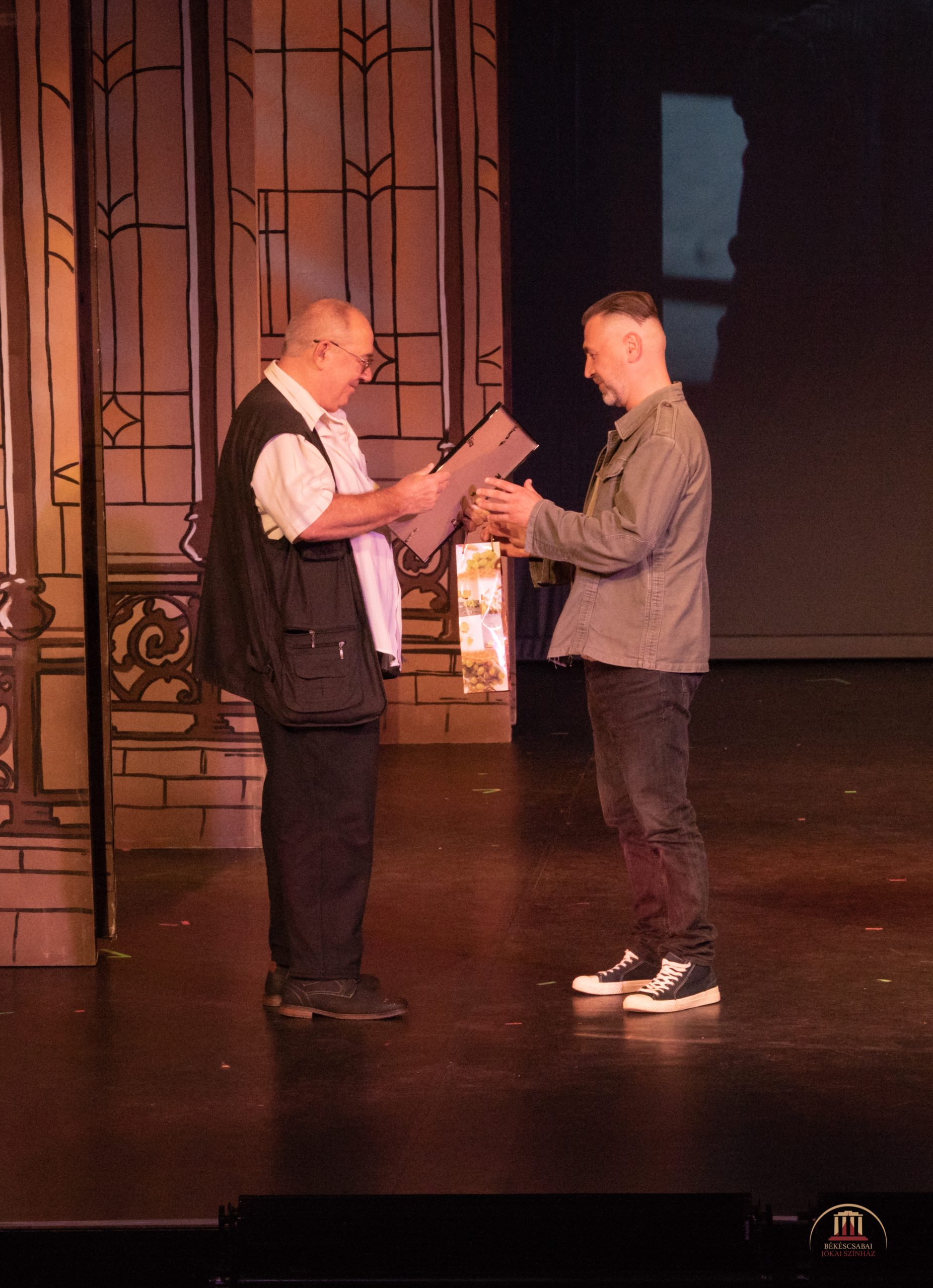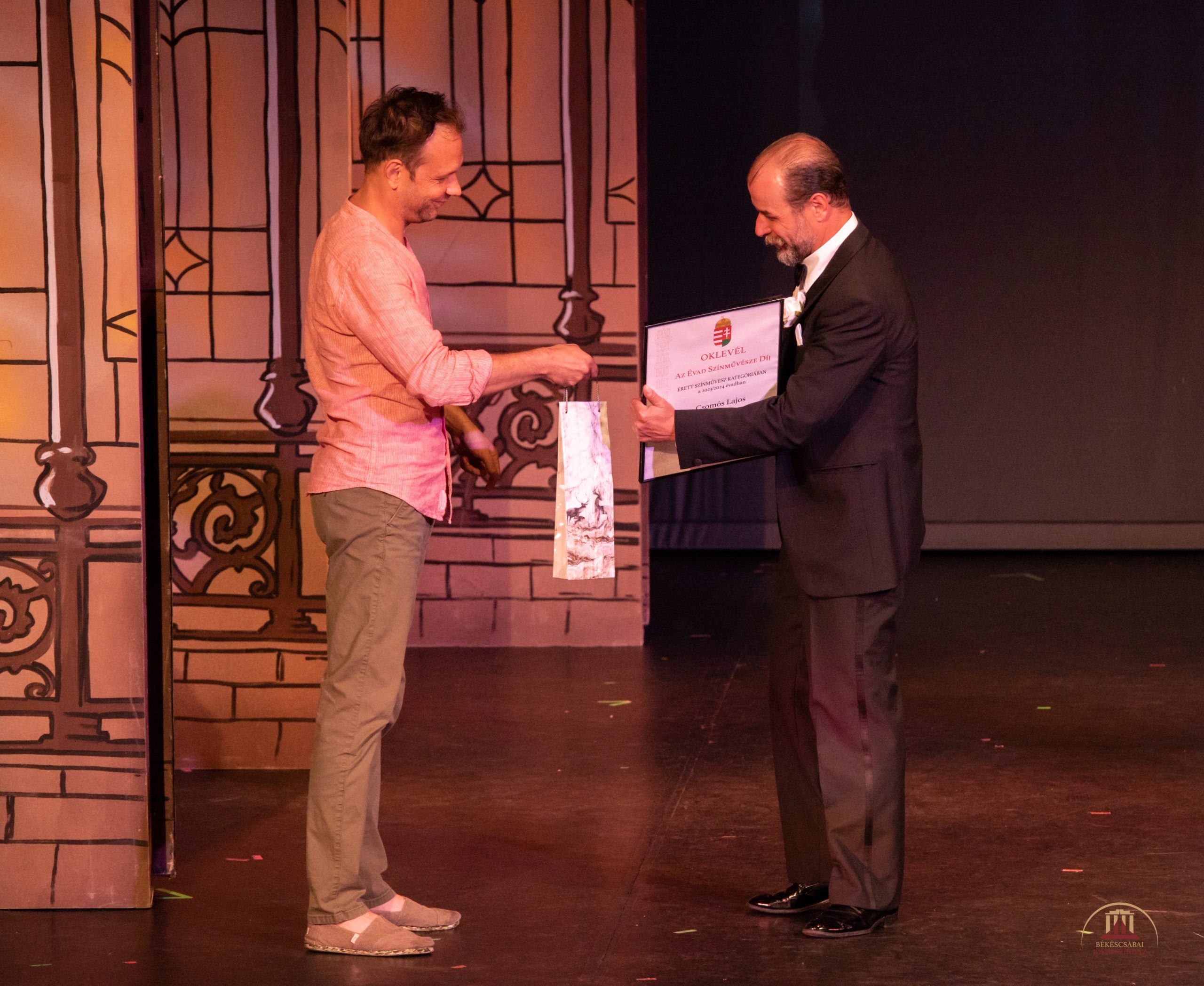 Az idei évadzáró gálát a szeszélyes időjárás miatt a Nagyszínpadon tartottuk, az eső szerencsére nem rettentette el a színházrajongókat a látogatástól. Seregi Zoltán direktor évadértékelő beszédében kiemelte, hogy egy nem fővárosi színháznak nyíltan vállalni kell a népszínházi jelleget, polgári és nemzeti szellemiségű, közösségbarát darabokat kell színre vinnie, ami Békéscsabán megvalósítható ezzel a csodálatos és nagyszerű társulattal.