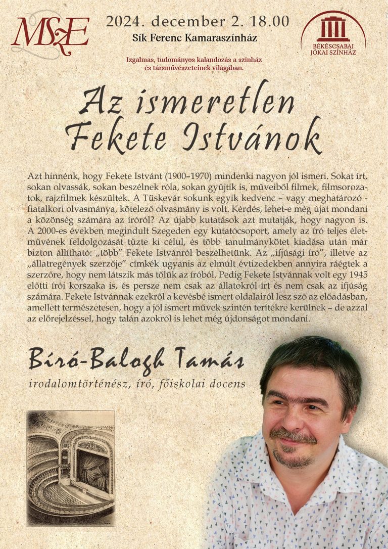 A főiskolai docens Az ismeretlen Fekete Istvánok címmel tartott előadást a Mindentudás Színházi Egyetemén