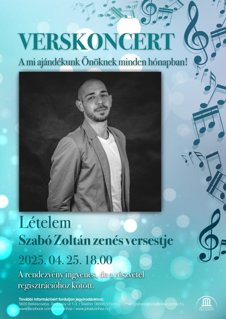 Április 25-én Szabó Zoltán várja Önöket a Művész Kávéházban A Verskoncert társulatunk ajándéka Önöknek – a belépés ingyenes, de kérjük, regisztráljanak szervezőirodánkban vagy a 06-66-519-550-os számon! Várjuk Önöket!