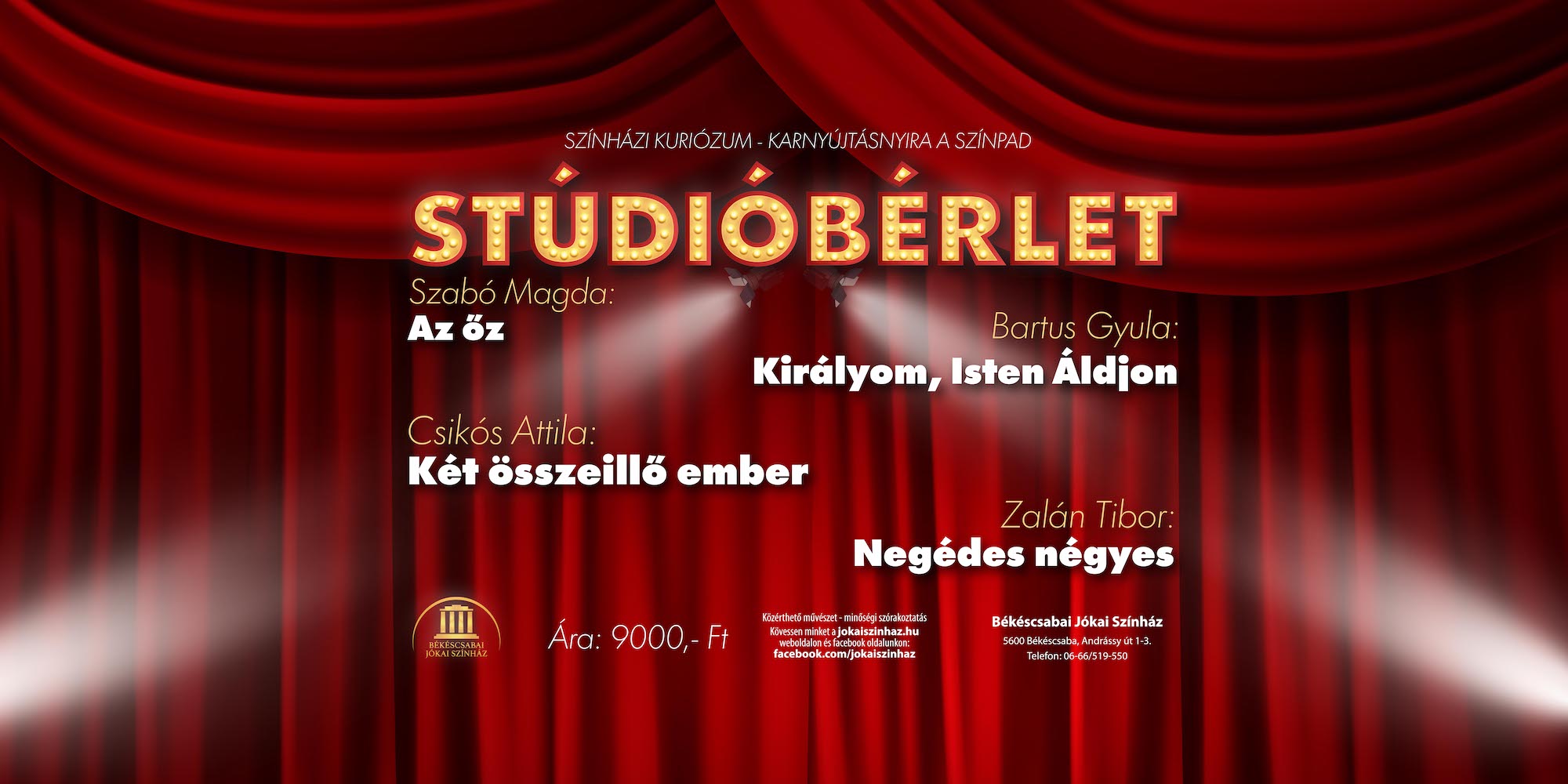 Kedveli a stúdiószínház meghitt hangulatát? Mondjon igent, mert stúdióbérlettel várjuk nézőinket!