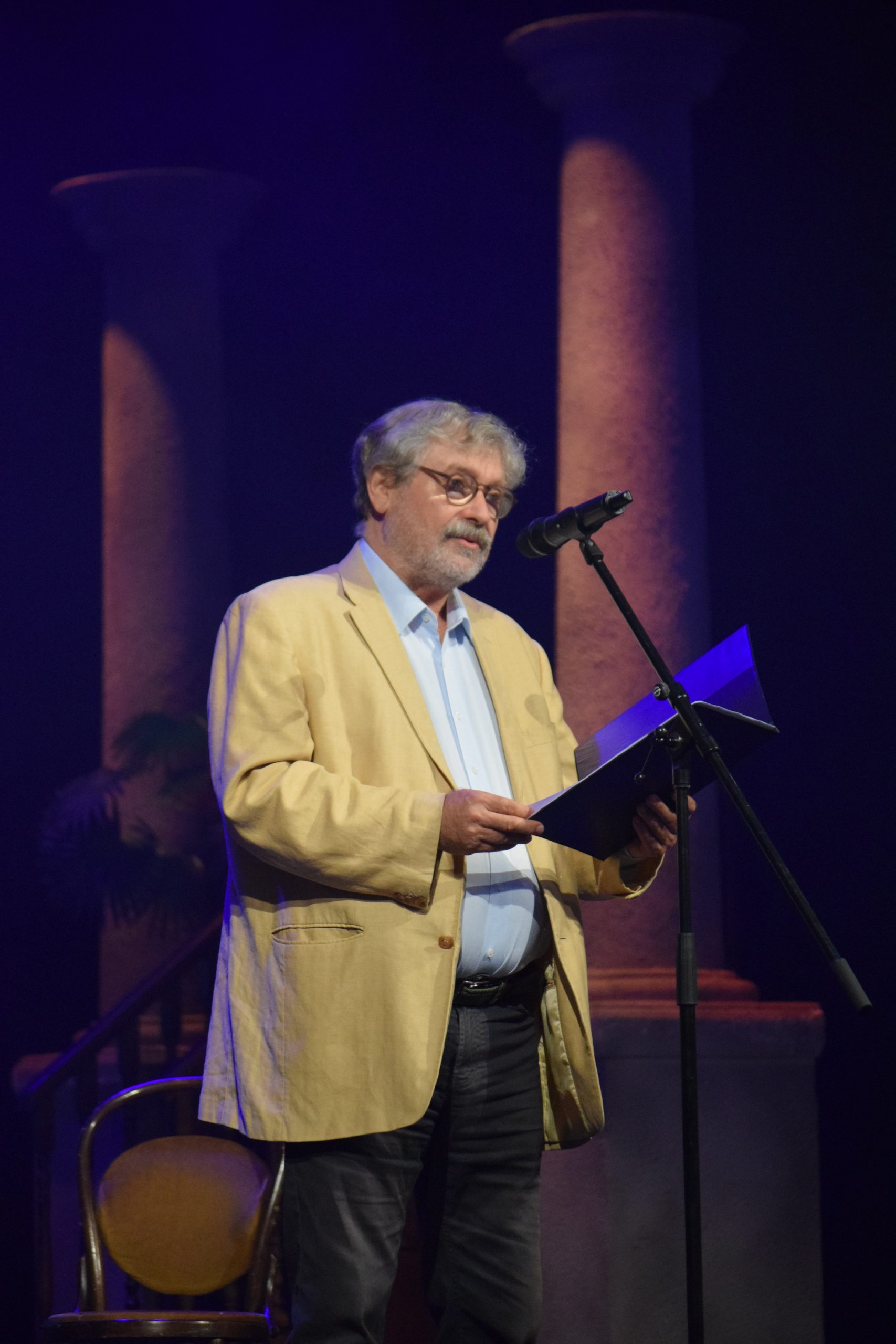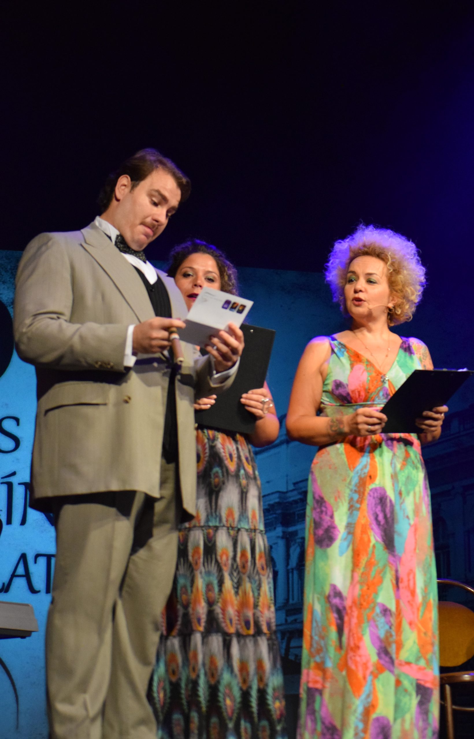 Innentől a szerzők valóságos áradata indult meg: a színpadon köszönthettük Szabó Magdát, aki Pataki Andrást kérdezte, Mikszáth Kálmánt, aki jellegzetes szivarjával a kezében segített, hogy az ajándék szabadbérlet gazdára találjon, majd némi meglepetésre William Shakespeare jelent meg a takarásból, hogy Seregi Zoltánt, a Hamletrock rendezőjét faggassa ki alkotói elképzeléseiről. A sorból Tersánszky Józsi Jenő sem maradhatott ki, aki Papp Barbarával folytatott egy rövidebb, ám annál mulatságosabb olvasópróbát. Az Idegenek és ismerősök nagyon is élő, sőt a napokban színházunkban köszöntött, szintén 70 éves szerzője, Zalán Tibor juszt se tette tiszteletét, ám az előadás egyik főszereplője, a Jókai Mór bőrébe bújó Czitor Attila osztotta meg velünk A szegény gazdagok egy érdekes, romantikus részletét.