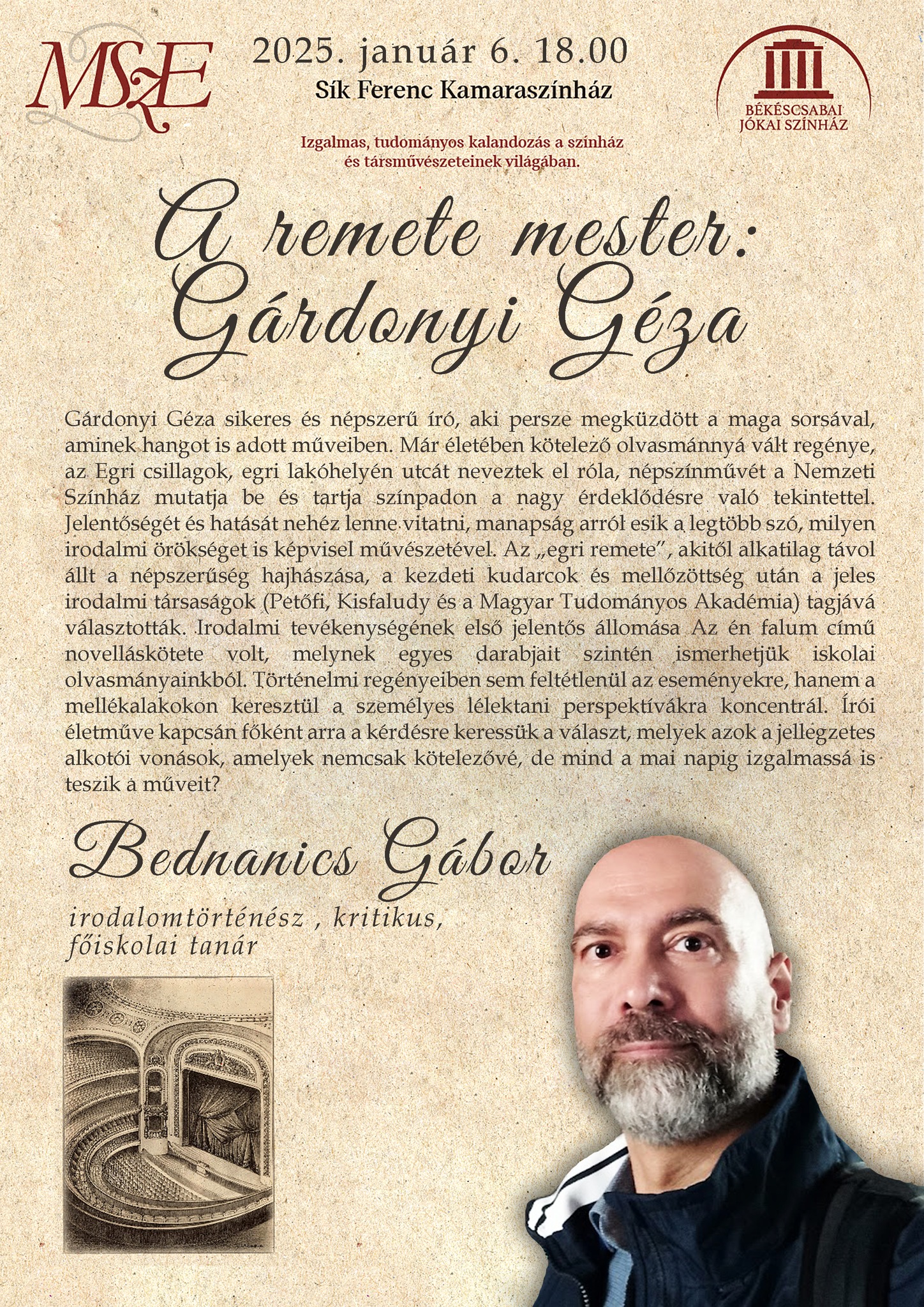 Januári előadónk: Bednanics Gábor irodalomtörténész, kritikus, főiskolai tanár, aki A remete mester: Gárdonyi Géza címmel mutatja be a szerző világát